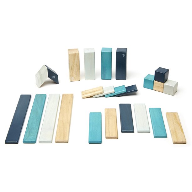 The 24-Piece Set in Blues brings your Tegu collection to a whole new level with an enhanced opportunity for play and creativity. Not the smallest set, and not the largest, the 24-piece set is juuuust right.