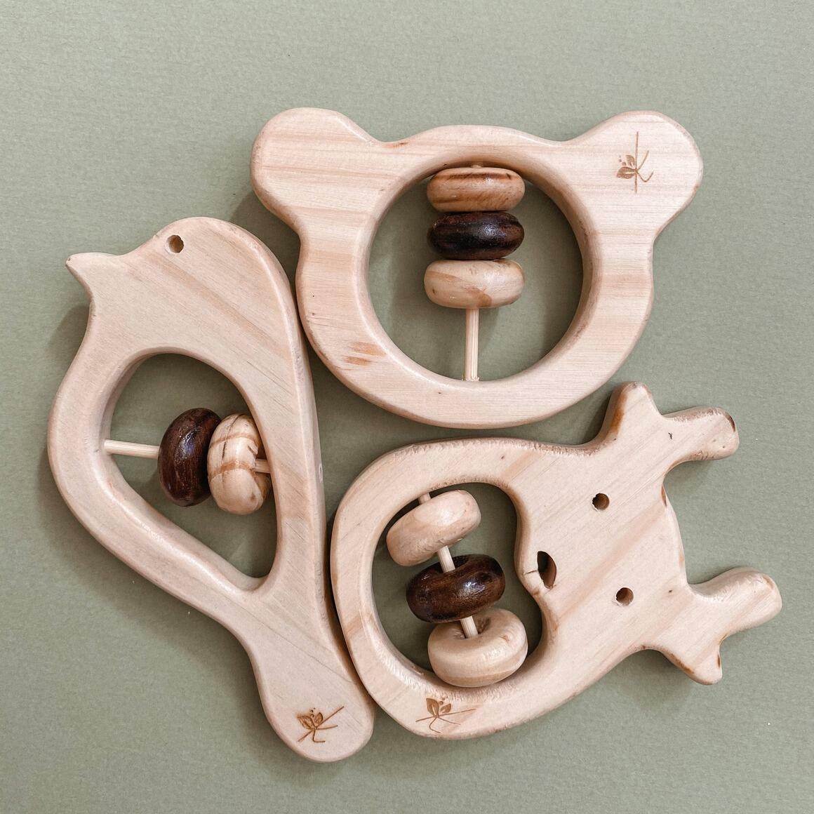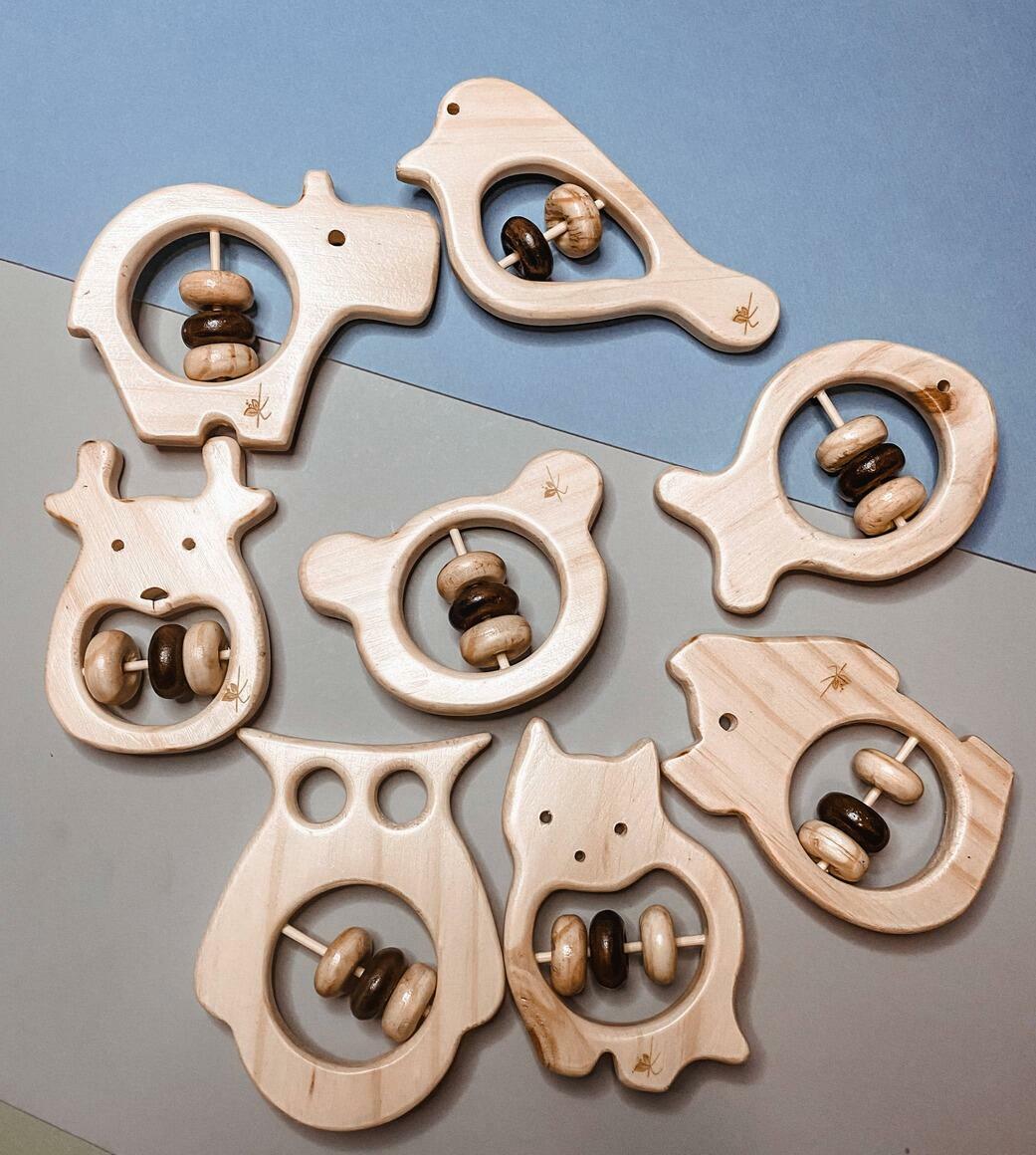 Several animal options to choose from. Wooden rattles are 100% handmade from pine wood, durable non-toxic and eco-friendly.