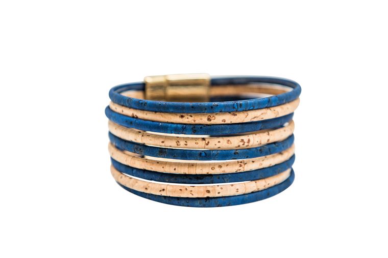 Multi-strand cork bracelet secured with a magnetic closure* for comfort and security. Can be worn with clasp up. Available in two sizes. *Some images shown with gold tone clasp but it is currently only available in silver tone.