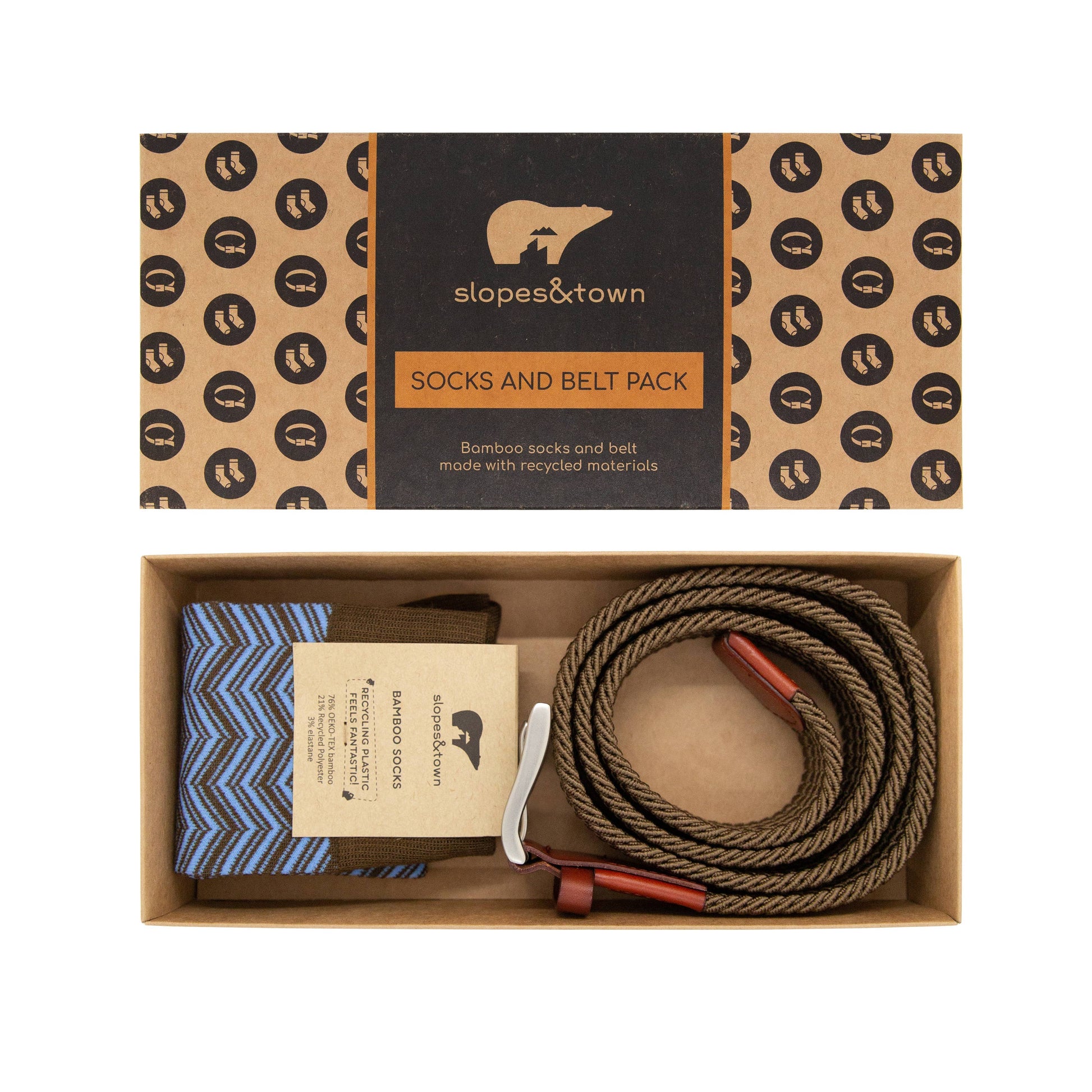 Mens Recycled Belt and Bamboo Socks Gift Box - Bob