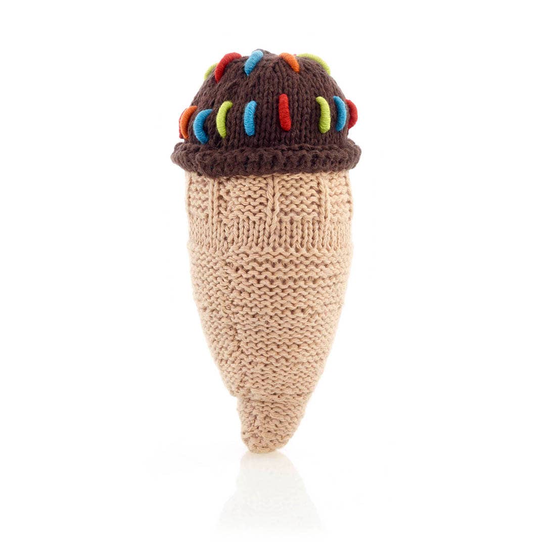 Yummylicious to look at and sweet to play with, our ice cream cone rattles are handmade with soft cotton yarn.