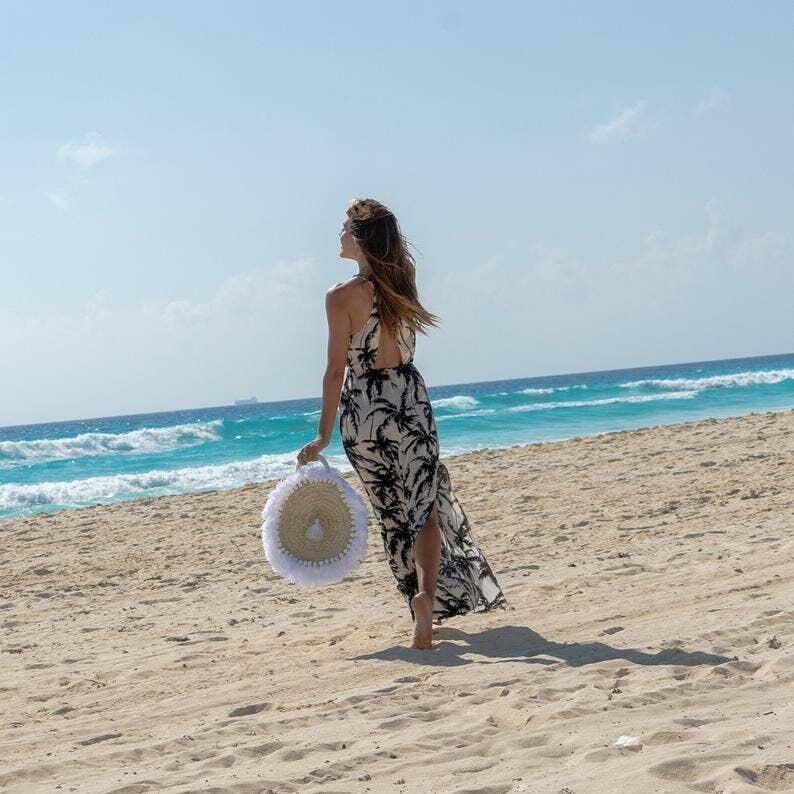 This round, woven basket has been made with love (and palm leaves and straw) by Moroccan artisans in the Marrakech tradition. What more could you want out of a summer bag?