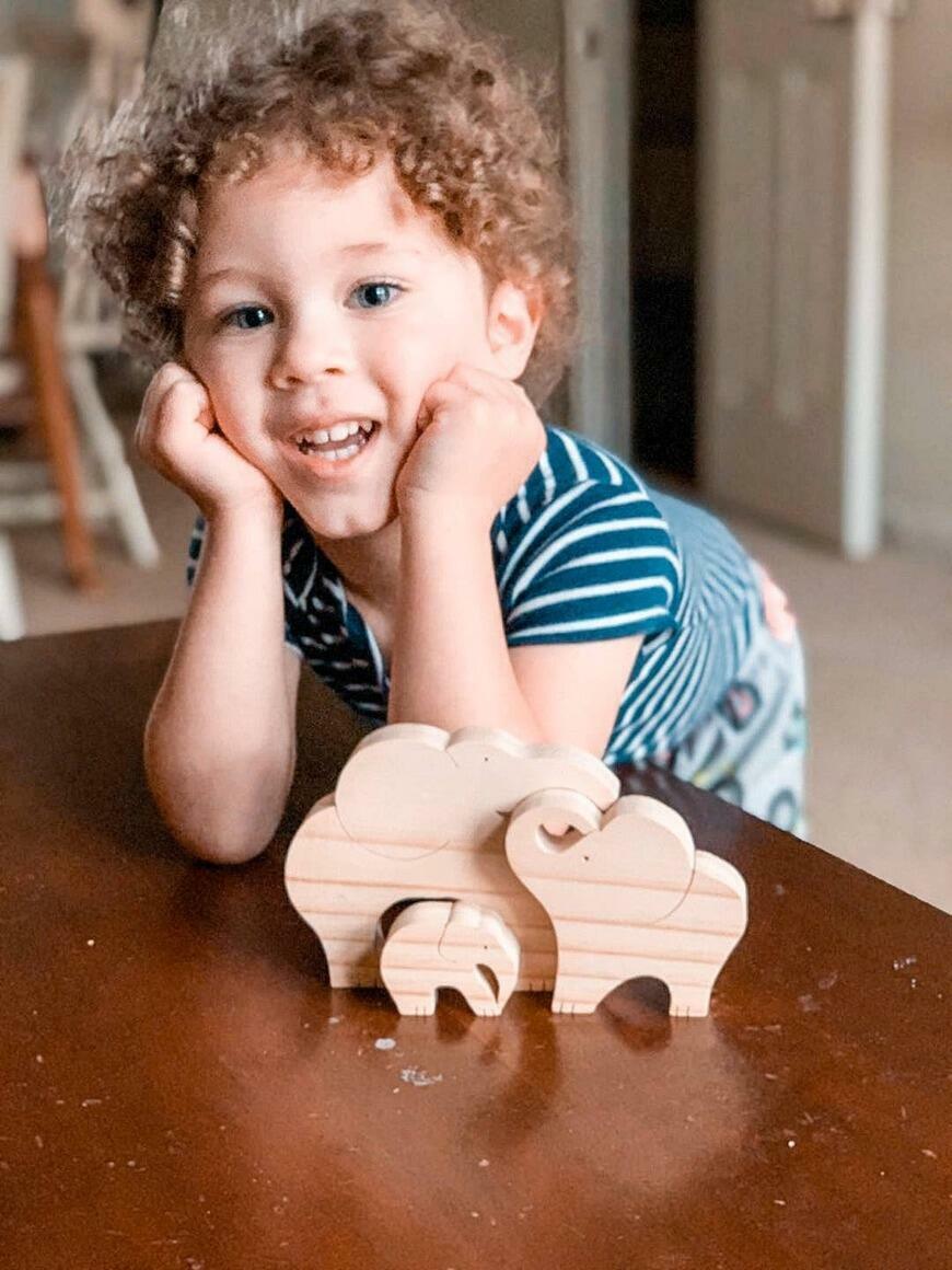 Adorable elephant puzzle set is a great first puzzle for toddlers. Develops logical thinking and encourages creative play.